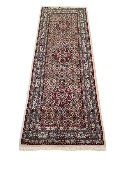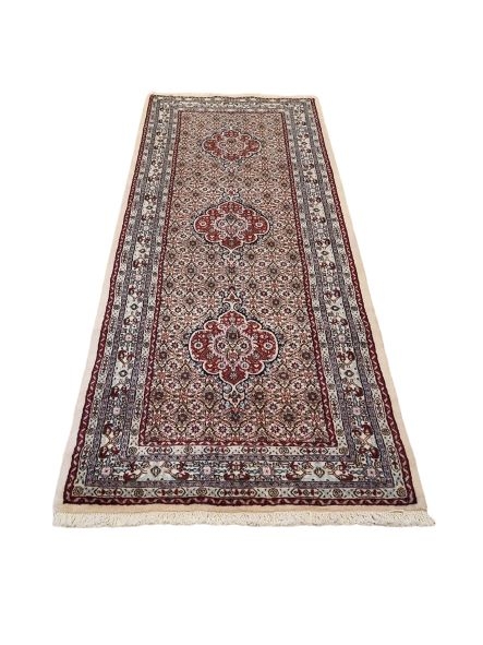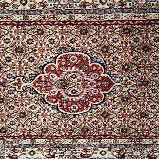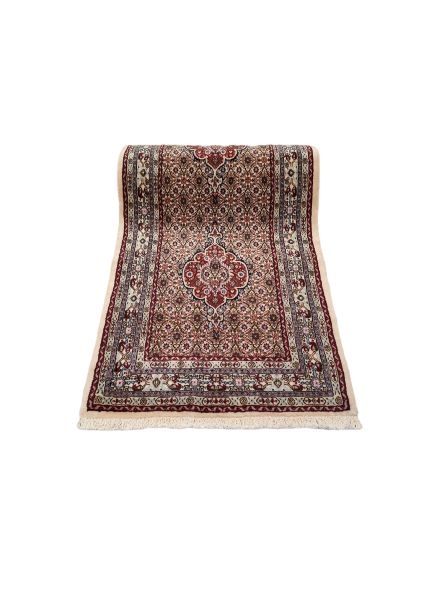 GRUNNFARGEN VED MOUD TEPPENE ER SOM OFTEST ELFENBENSHVIT ELLER BLÅTONET, MED RØDE ELLER BLÅ MOTIVER.