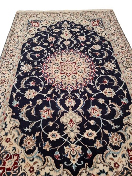 TEPPENE HAR HØY KNUTETETTHET OG FØRSTEKLASSES MATERIALER, SOM GJØR DEM TIL TEPPER AV HØY KVALITET. TRADISJONELT SETT SÅ ER NAIN TEPPENE PRYDET MED EN SENTRAL MEDALJONG BESTÅENDE AV VAKRE ARABESKER (ESLIMI) OG BLOMSTERMOTIVER.