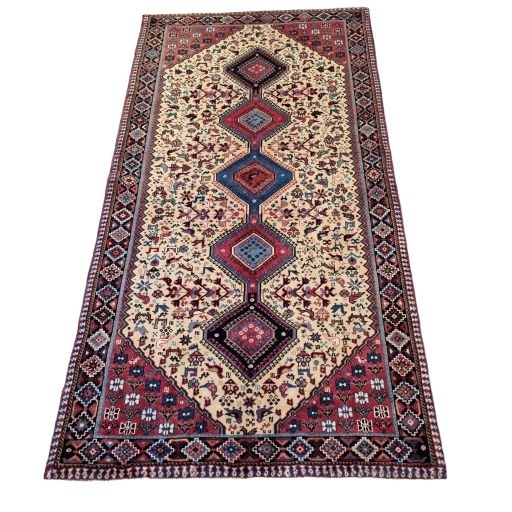 TEPPENE ER LAGET AV YALAMEH STAMMEN, SOM ER EN UNDERGRUPPE AV LORI BELFOLKNINGEN I IRAN. DENNE STAMMEN ER KJENT FOR Å LAGE TEPPER MED GEOMETRISKE MØNSTRE, MEDALJONGER OG STAMME MOTIVER, SOM F.EKS DYR OG FUGLER.